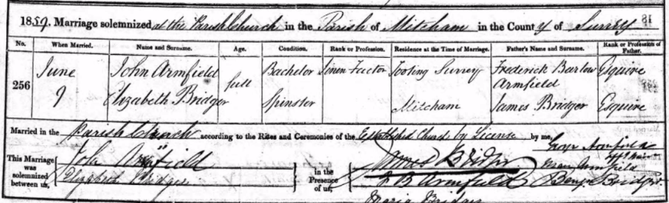 1859 Marriage Elizabeth Bridger