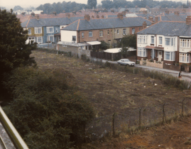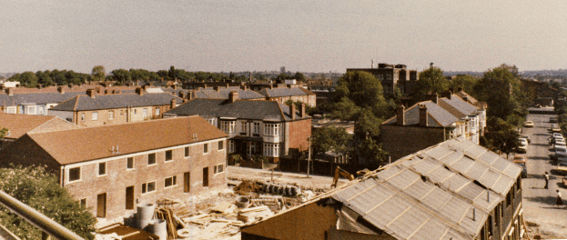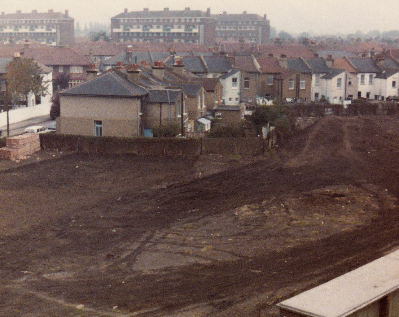 Oct/Nov 1979 view to east, with Laburnum estate flats on horizon.