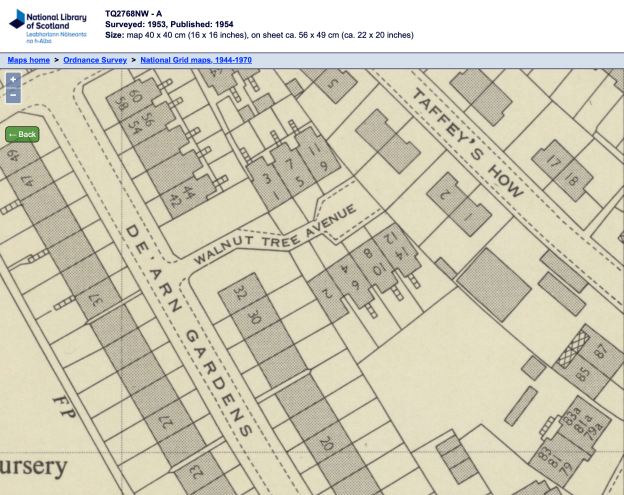 Houses are numbered odd on the north side, from 1 to 11 and even on the south side from 2 to 14. All have the postcode CR4 3AB.
