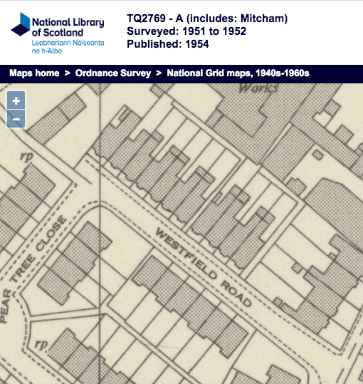 As seen from Love Lane, there eleven houses on the right, which are from around 1890. A block of six houses on the left, were built in 1934 when Pear Tree Close was built. In around 1986/7, the road was extended to the right at its western end to run parallel with Field Gate Lane, and a block of seven 2-bed, 3-storey, town houses, with integral garages, were built. They are numbered 40 to 46 sequentially and have the postcode CR4 3AL, whereas the earlier houses numbered from 1 to 17 all have the postcode CR4 3AT.