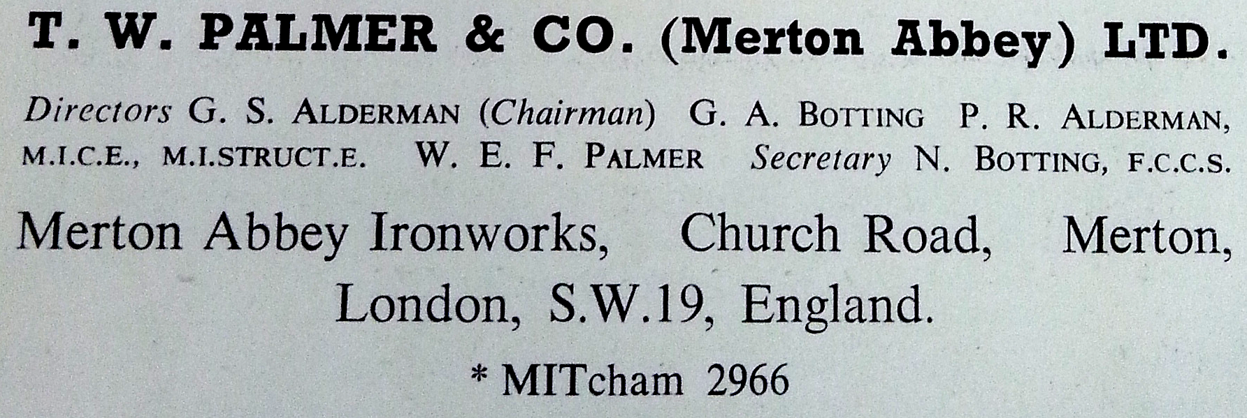 The company was set up in 1894 by T W Palmer, R H Alderman and Alfred Botting, who found themselves unemployed when a company of fencing suppliers, for which they worked, had to close. All three were members of the Baptist Church in Victoria Road, Clapham.