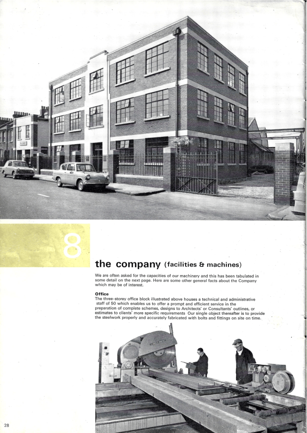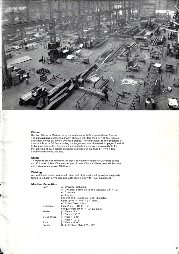 Operating from a rented basement in Victoria Street, Westminster, the three men purchased and fixed themselves wire fencing, sailings and gates and very soon moved on to making their own iron standards, pillars and gates. By 1901 they were able to purchase a site in Merton which became known as the Merton Abbey Ironworks. The fencing business was eventually made into a separate company, called the Victoria Fencing Co Ltd, in 1919 and the original company branched out into steel constructional engineering projects of a wide variety. Among these were some of the pontoons used in the Mulberry Harbour Scheme for the D day landings in Normandy in 1945, the London County Council’s Hyde Park Corner Marble Arch development, the Elstree Film Studios, the Avonmouth oil boom, a power station at Dekhelia, Cyprus, Kingston upon Thames railway bridge, and various factories, iron stairways, railings and gates.