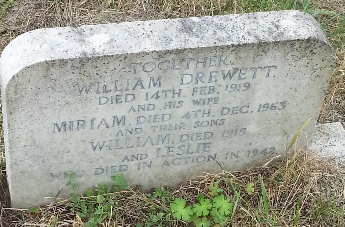Additional Information: Husband of Miriam M Drewett of 12 Swains Lane, Lower Tooting, London SW17. His son Leslie Royal Drewett fell in WWII.