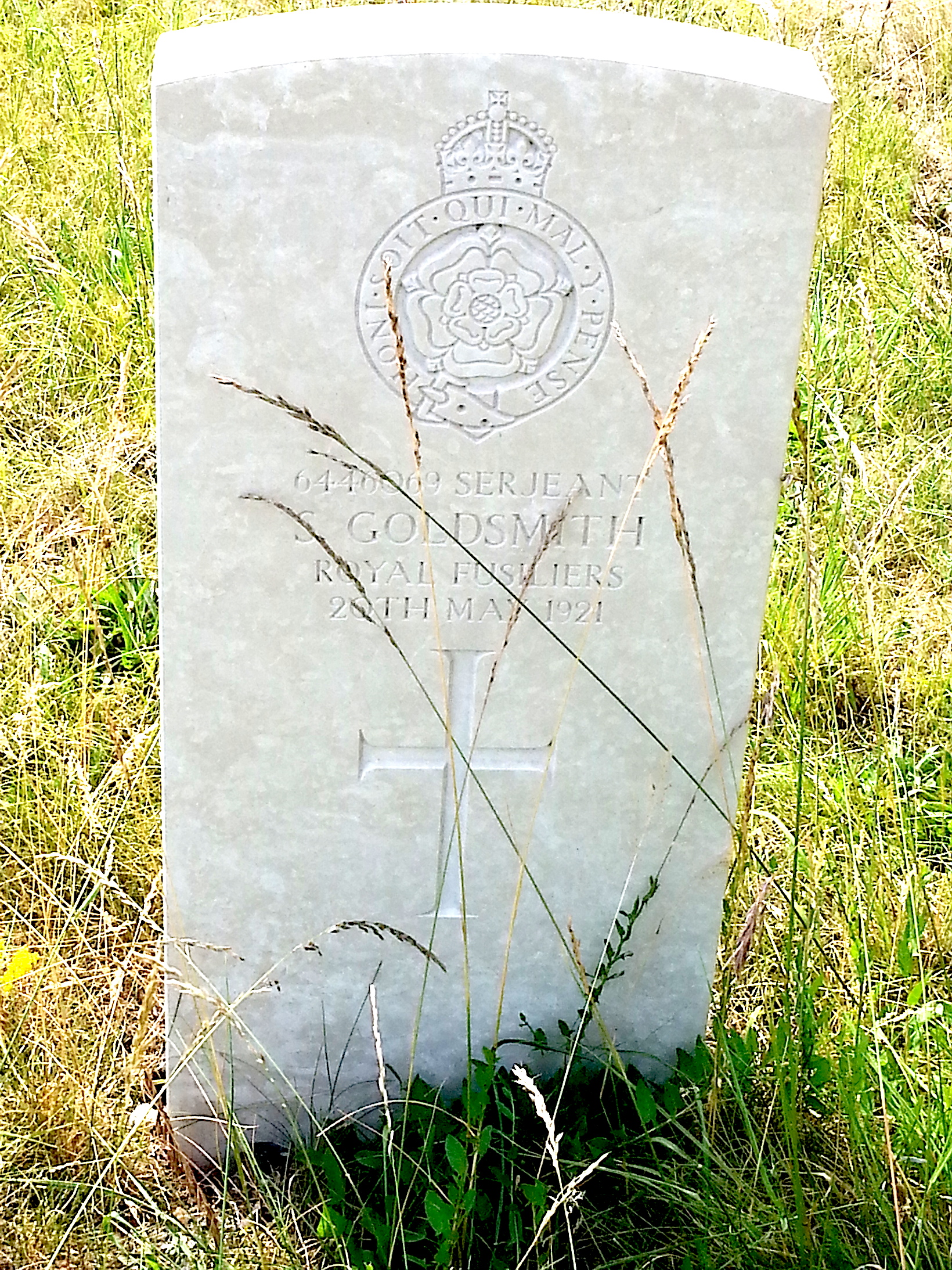 Goldsmith, Stephen Leave a reply From CWGC Rank: Serjeant Service No: 6446069 Date of Death: 20/05/1921 Regiment/Service: Royal Fusiliers 1st Bn. Grave Reference: 9. 98 Cemetery: MITCHAM (CHURCH ROAD) BURIAL GROUND Share this: Share on X (Opens in new window) X Email a link to a friend (Opens in new window) Email Print (Opens in new window) Print Like Loading...