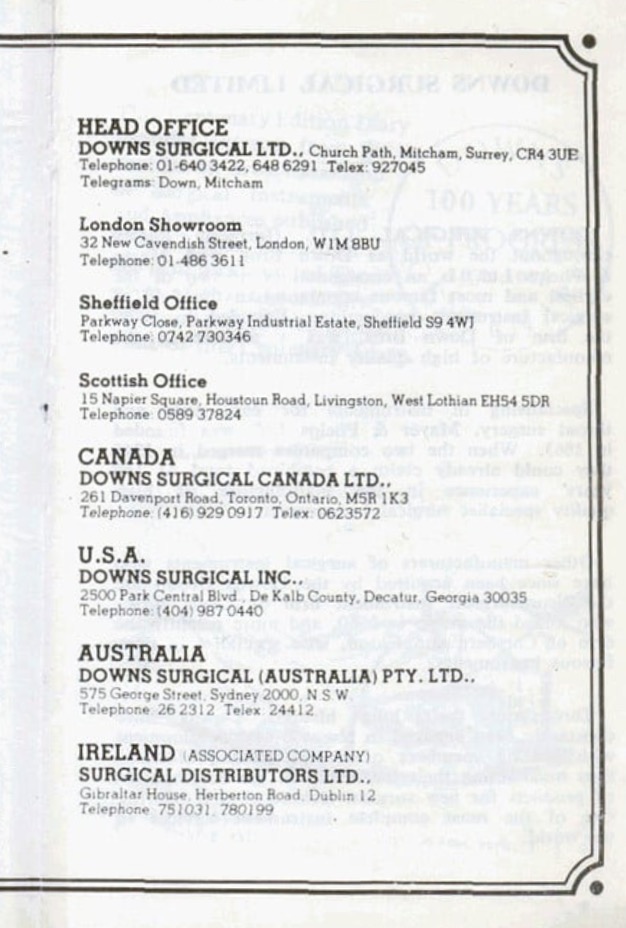Downs Surgical Ltd (formerly known throughout the world as Down Brothers and Mayer and Phelps Ltd) is an amalgamation of two of the earliest and most famous companies in the field of surgical instruments production. founded in 1879, the firm of Down Brothers was a pioneer in the manufacture of high quality instruments.