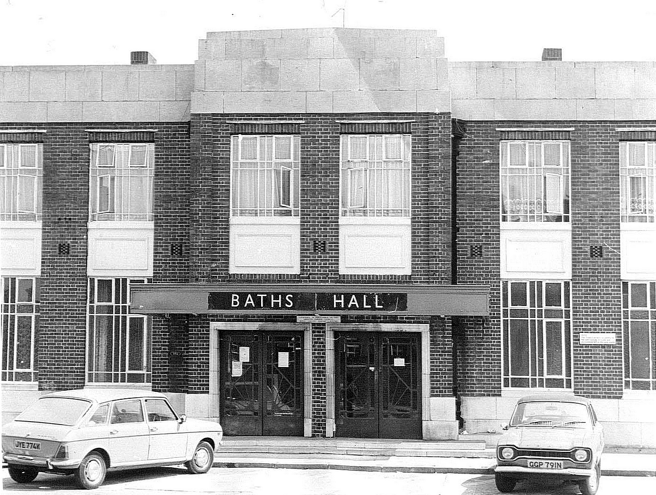 The Baths Hall has had an eventful life since it was opened by Mr. W. Carlton. J.P., chairman of the Urban District Council.