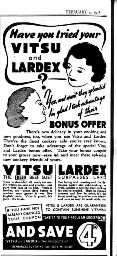 This ad from 1938 introduces the brands VITSU and LARDEX: