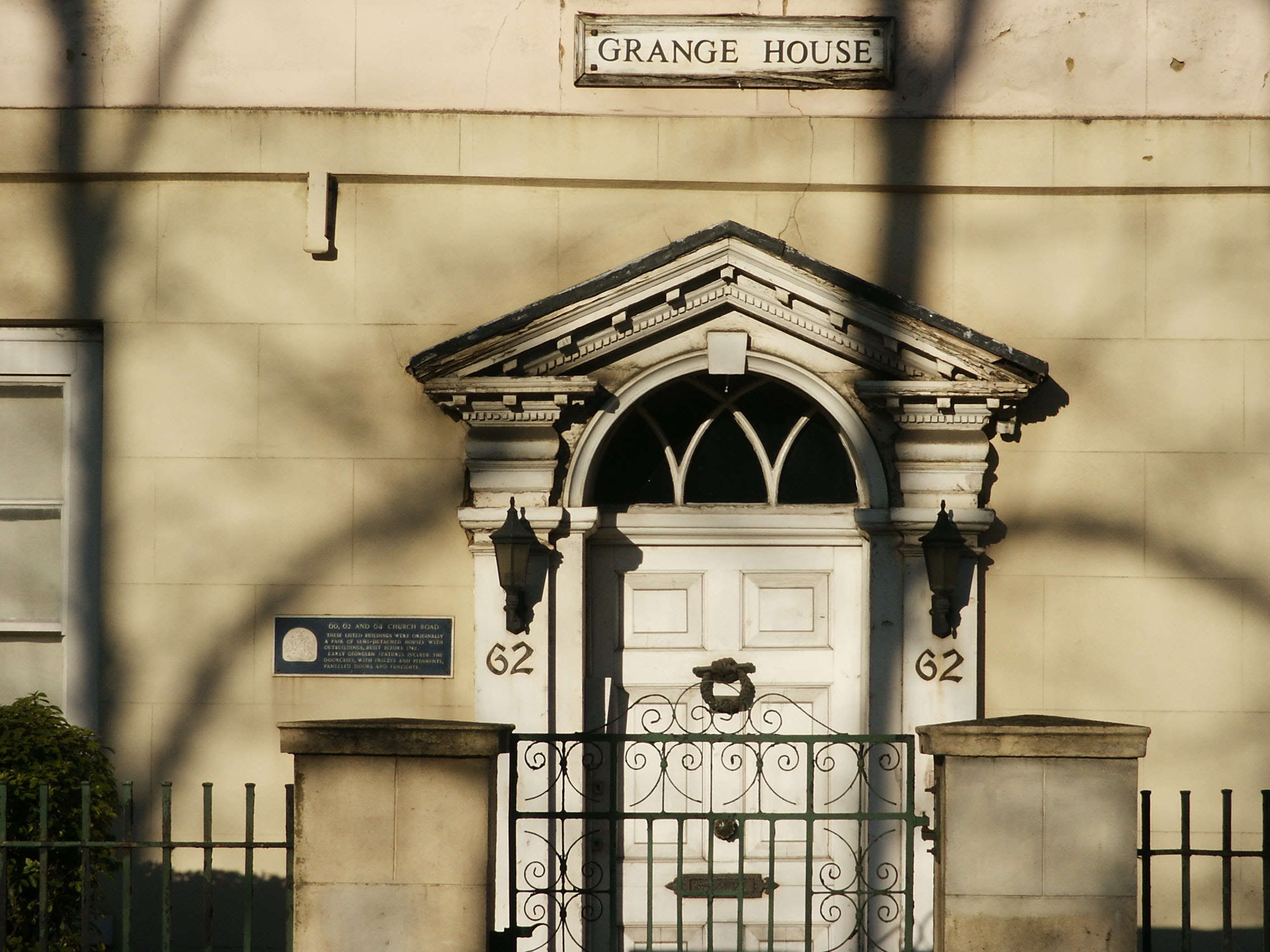 These photos were taken in December 2005 and the name ‘Grange House’ as well as the blue plaque have since been removed. The plaque read: