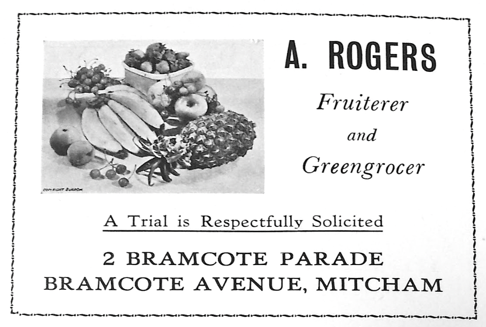 A. ROGERS, greengrocer – source: 1938 Mitcham Guide