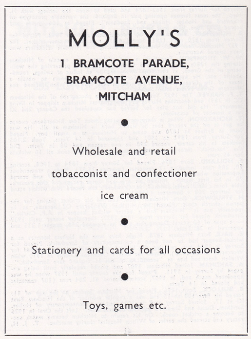 When I think of shops in Mitcham, I remember the names of Harpers sweet shop on the corner of Bramcote Ave and Stevenson & Rush in London Road. Harpers I remember waiting with a bowl to collect the ice cream during rationing and Stevenson & Rush for the smell of ground coffee.