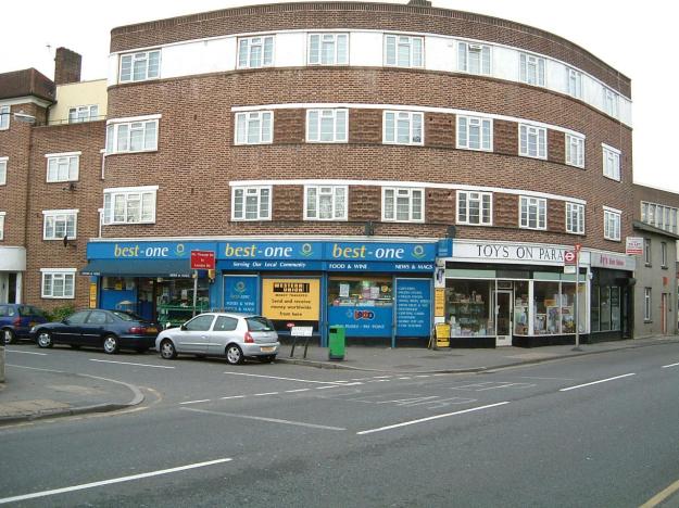 A parade of shops at the curved part of Bramcote Court, on the west side of Bramcote Avenue at the junction with Cricket Green. Originally there were 4 shops, numbered 1 to 4 from south to north, with no. 4 facing Cricket Green. At present, in 2022, there are 3 shops, numbered 1-2, 3 and 4.