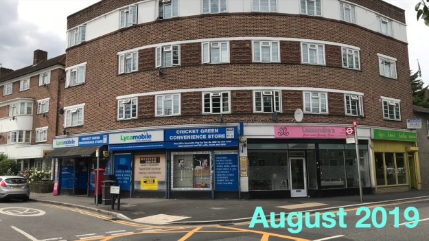 In 2021/2 the shop fronts were given a facelift, paid for out of the Community Infrastructure Levy, which is contributed to by local developers. This was done after a successful campaign by the group Mitcham Cricket Green Community & Heritage, who had campaigned for this parade and Bramcote Court be added to Merton Council’s Local List.