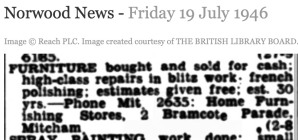 Home Furnishing Stores, tel: MIT 2635 – source: 1946 Norwood News