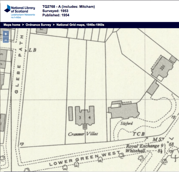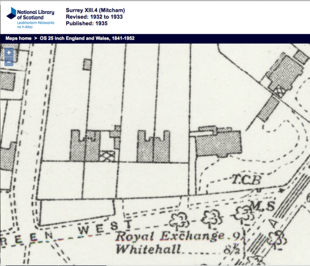 Numbers 1 & 2, next to Glebe Path, can seen in this clip from a photo of the Mitcham War Memorial on Merton Memories.