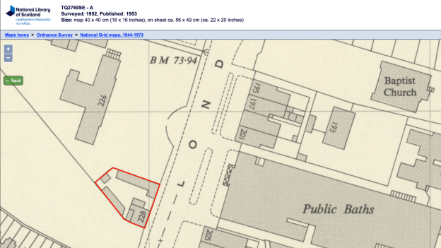 Premises that were on the London Road to the south of number 226, as shown in this 1952 OS map: