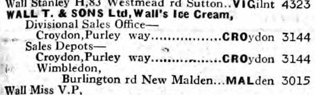 T. Wall & Sons Ltd., ice cream vendors, was here before WW2, and was listed in the 1930 commercial directory. A viewer of my video channel tells me that he passed his driving test in 1963 and sold Walls ice cream from a Ford Anglia van, which was left land drive, and “Fun to Drive at Just 19 Years old !”