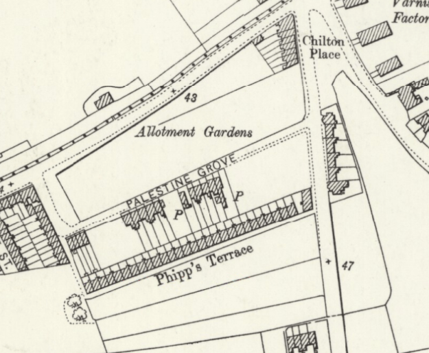 Allotments on the north side and two rows of houses on the south side, with a row on the west can be seen in this OS map of 1894: