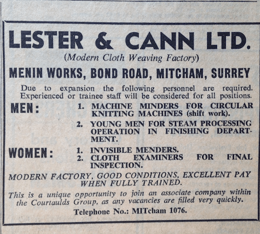 the Courtaulds Group, as any vacancies are filled very quickly.Telephone No.: MITcham 1076.