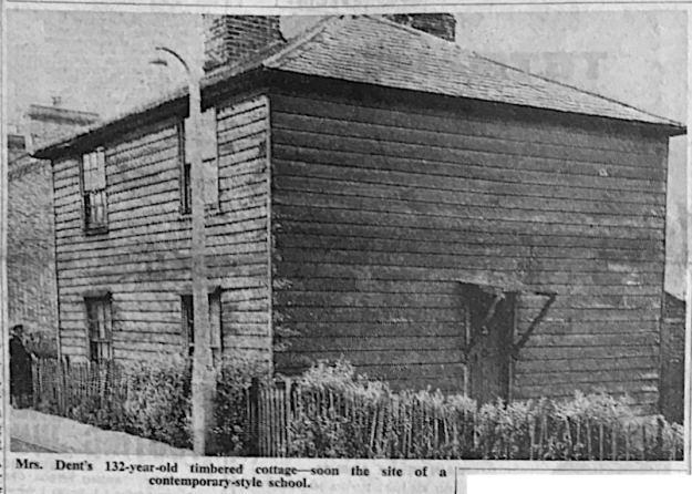 Mrs. Dent who lived in the cottage alone since her husband died, walked along her narrow garden path and set off for the Tate Almshouses, Cricket Green, where she will now live.