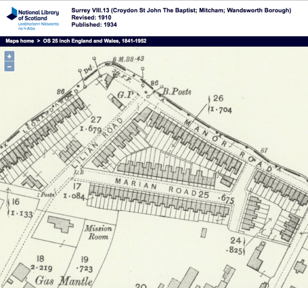 Note that on this 1910 map, Greyhound Terrace is shown as Manor Road, which continued along the present Rowan Road to Manor Road to the Common. The name of the road signified it being the boundary of the manor. Parts of that road were renamed in 1926 when it became necessary to renumber the houses.
