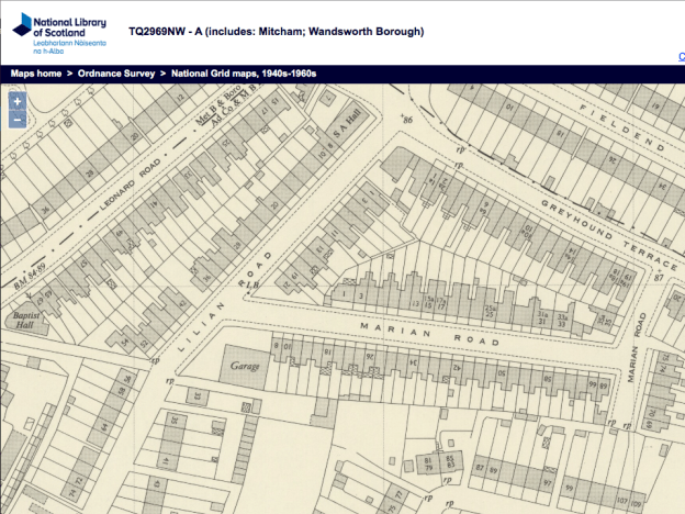 This OS map of 1952 shows the boundary line running through Leonard Road to the west, and Greyhound Line to the north.