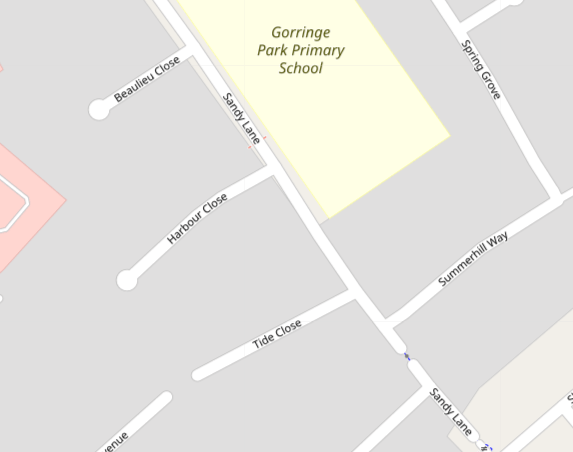 Road off west side of Sandy Lane, consisting of two blocks of flats on the left hand side of the road, as viewed from Sandy Lane, and one block on the right. The names of the blocks reflect the seaside theme: Reef House, Pier House and Dune House. The postcodes for the flats in these blocks are CR4 2GL, CR4 2GN and CR4 2GR respectively.