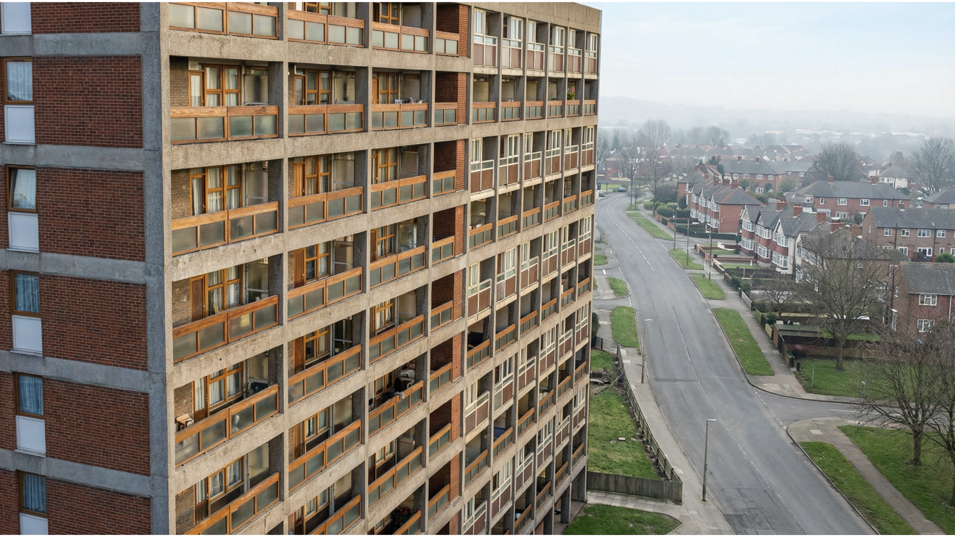 Two of the blocks of flats at the Phipps Bridge Estate, Mitcham, that were demolished in 1996.