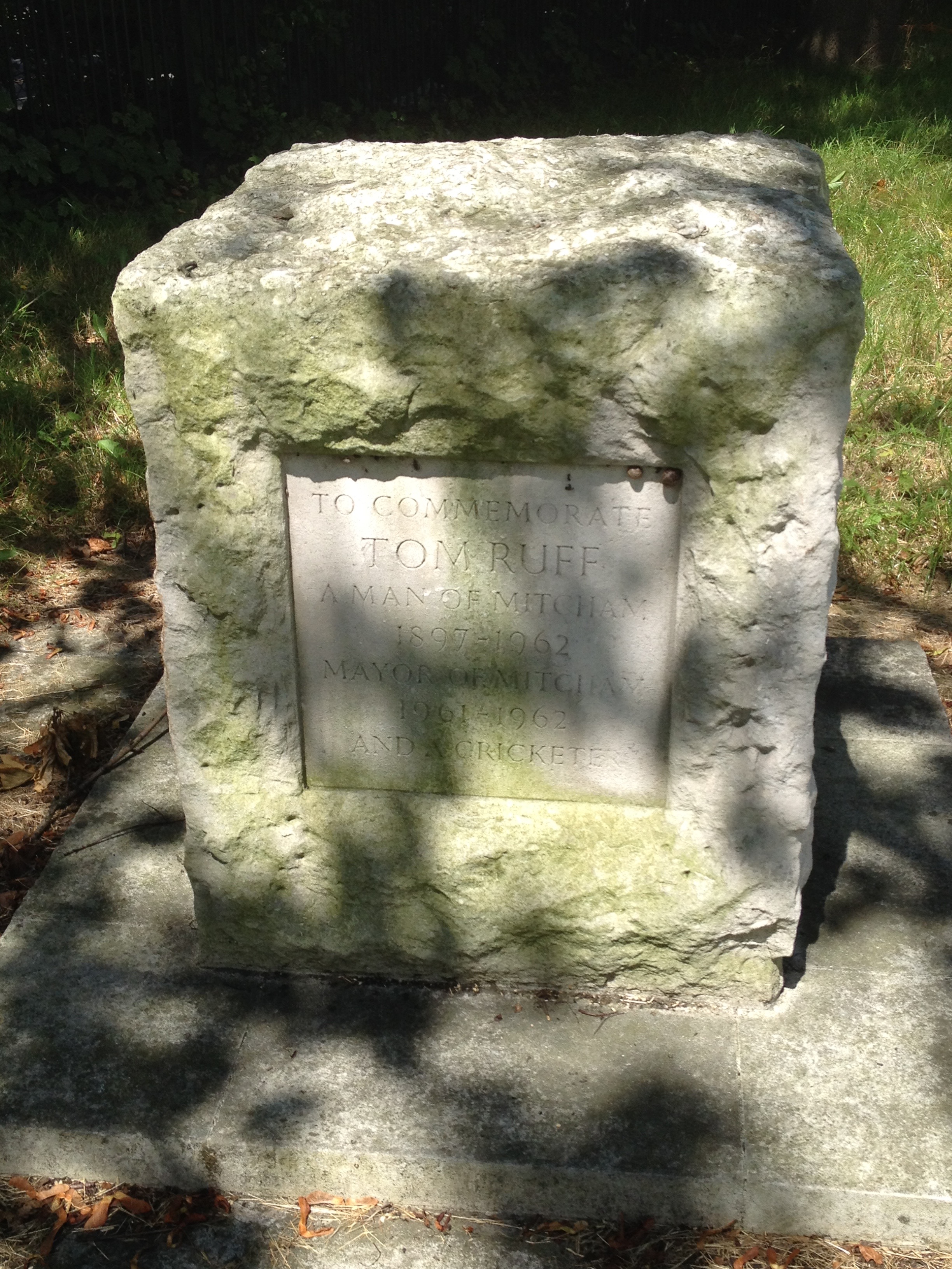 TOM RUFF, Mayor of Mitcham, who died on March 17, 1962, his year of office, was a modest man. He would have been incredulous that his memorial in Portland Stone would have been erected on Mitcham Green. He would have been delighted that the names of 17 outstanding Mitcham cricketers shared the place of honour with his. And he would have been thrilled that every penny of the cost of making and siting the stone came from voluntary contributions throughout the borough.