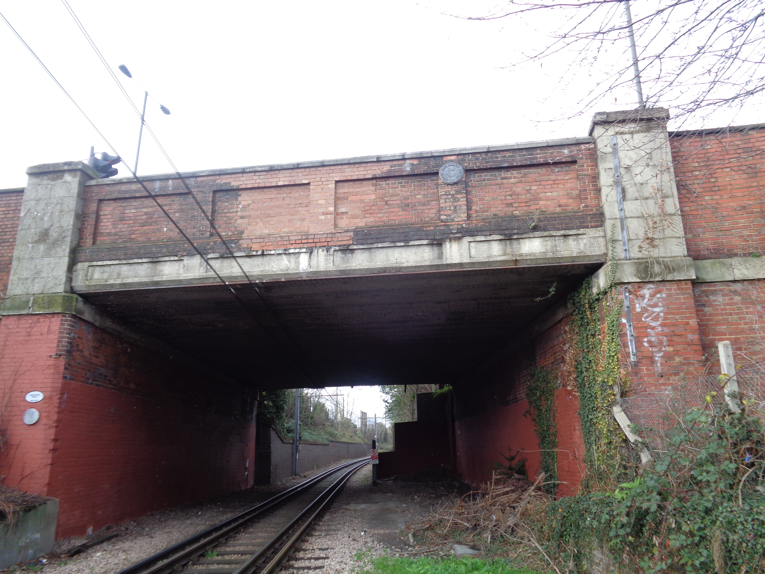On the bridge over the line is a plaque commemorating the Surrey Iron Railway. Another plaque of the same design was on the shop of E. Reeves in Croydon. According to the Croydon Guardian, it was placed as part of the Wandle Valley Mapping project in 2005, by its head Alan Cuttie.