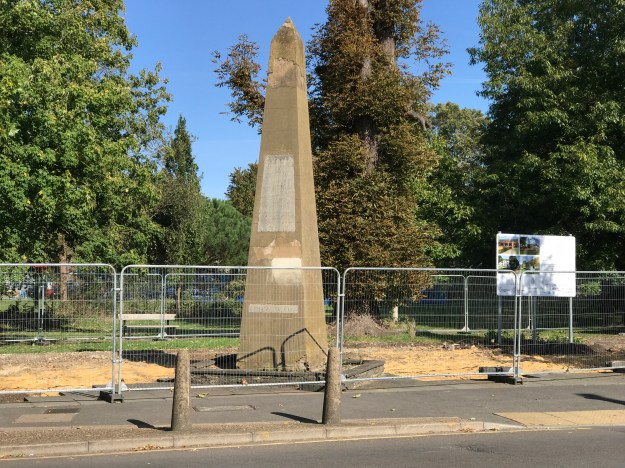 In September 2020 the wall behind the obelisk was removed and a temporary fence was put up.