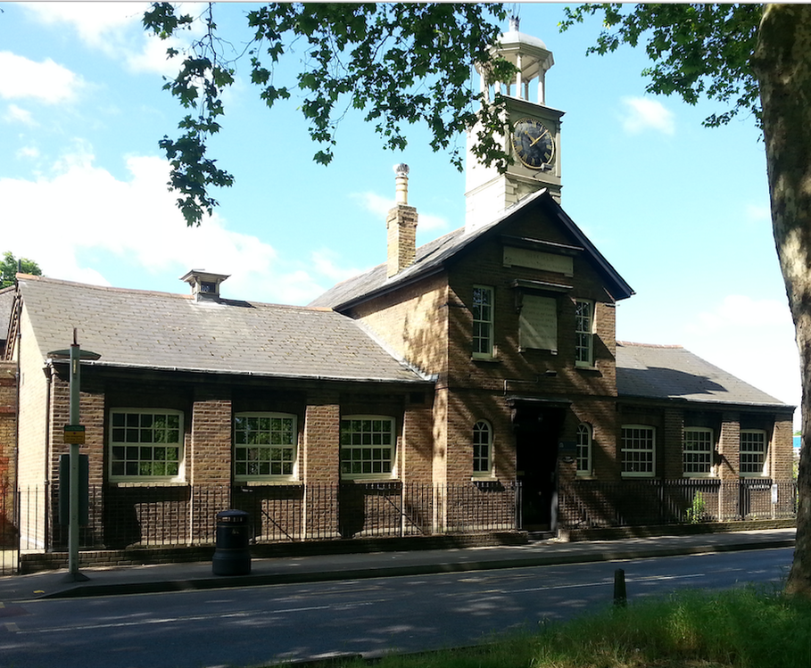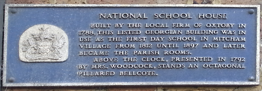 Built by the local Firm of Oxtoby in 1788, this listed Georgian building was in use as the first day school in Mitcham village from 1812 until 1897 and later became the Parish Rooms. Above the clock, presented in 1792 by Mrs Woodcock, stands an octagonal pillared bellcote.