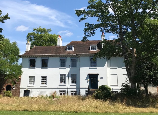 Substantial manor house. Late C17. Brick with later stucco. Plain tile hipped roof to eaves. 2 storeys plus basement and dormers. West facade of 5 bays with 2-bay extension to left. Central bay to original block projects slightly with square headed architraved corniced entrance, reached by steps. Square headed windows, blind to 2 right bays. Sashes, flush frames, glazing bars. Modillion eaves cornice above first floor. 3-bay return to south. Other facades also of architectural interest. Interior retains staircase with strong twisted balusters, some panelling, etc. Built by John Odway, who was granted a building lease in 1680.