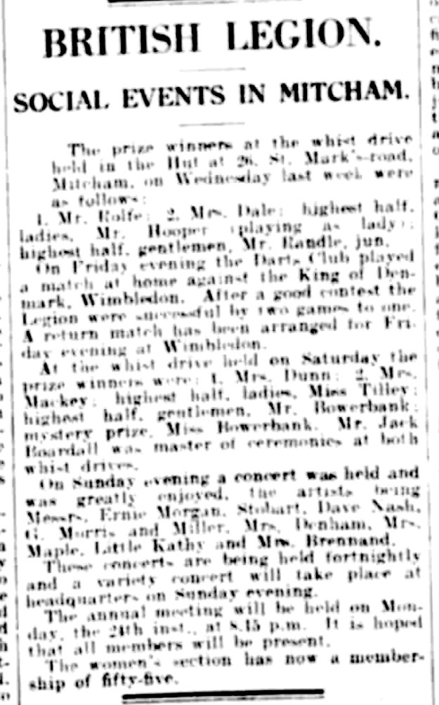 The party then broke up, and adjourned to the Lower Green where they swelled the enormous crowd assembled to witness the magnificent display of fireworks provided gratuitously by Mr. Pain. By the time the “Mitcham Ben” had struck, for the second time in its existence, the hour of twelve, the village had resumed its normal appearance. Mr. R. M. Chart and Mr. W. R. Harwood deserve the heartiest thanks of all who were present for their courteous performance of what might be termed the duties of M.C.’s.