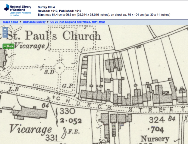 1910 OS map, which shows this part of Church Road as Church Street.