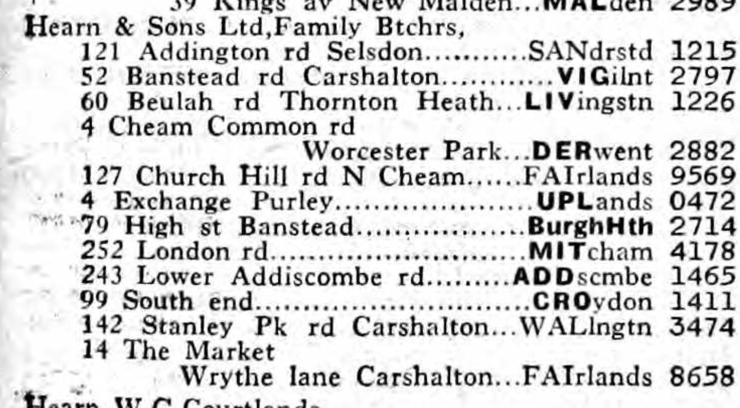 This was a branch of the firm of butchers, as shown in these telephone book entries: