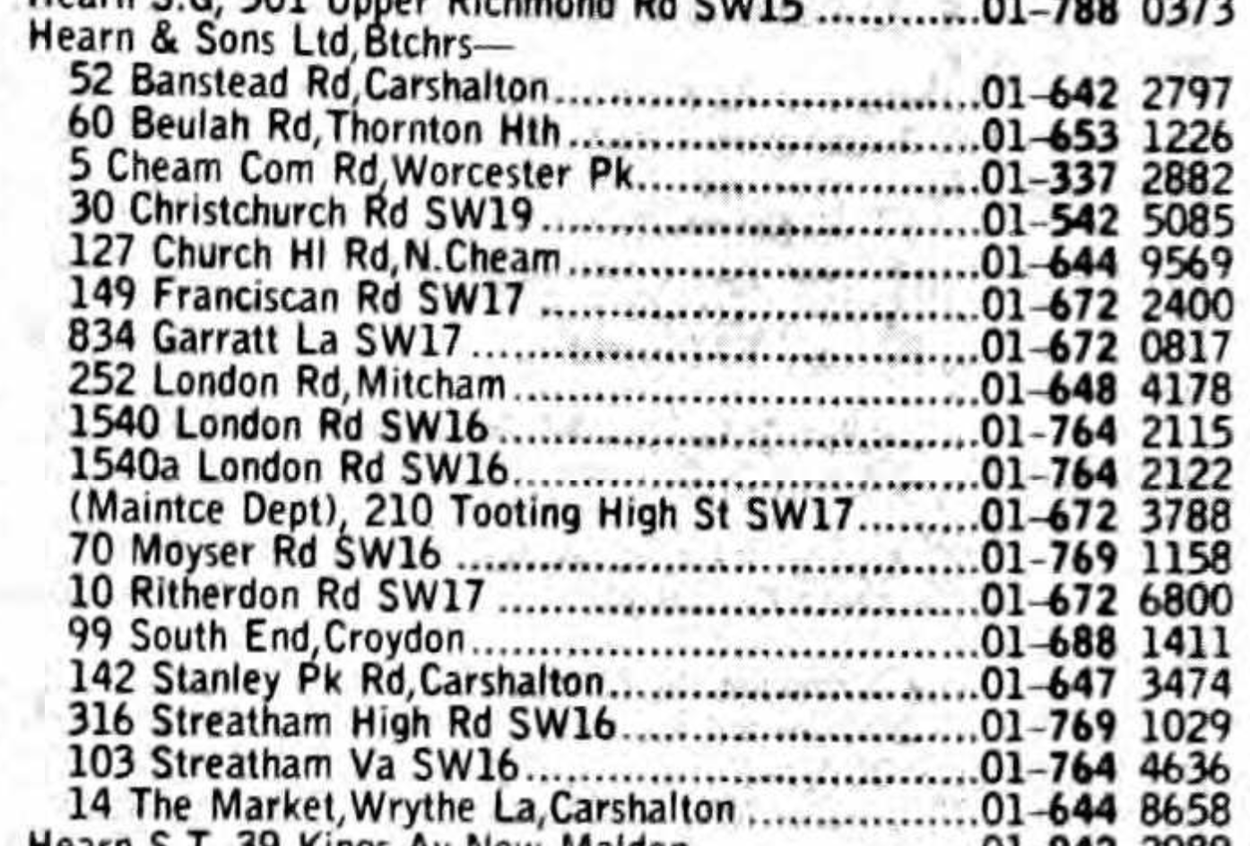 Sometime in 1975, me and Mungo (Steve) went for a walk to look for a job, as everyone else had paper rounds or worked on the milk, so we thought we would try the butcher shops in Mitcham. The nearest one was the little butcher shop next door to the Bull, Mungo went in first as we were going to take turns and I was gonna ask at the next shop. Mungo drew a blank so it was up to me next, we stopped at Hearns and I meekly went through the door and spoke to the manager, asked and he said come in on Saturday. Result!!!