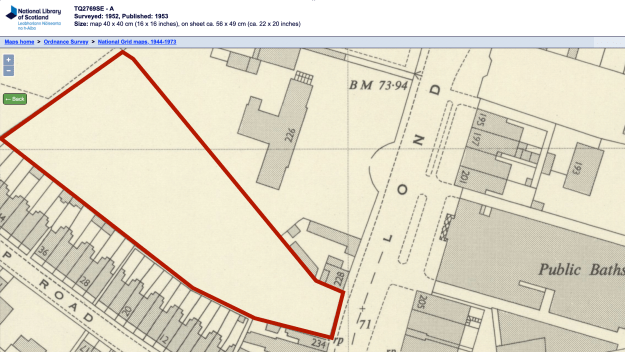 1952 OS map reproduced by permission of the National Library of Scotland. Reuse CC-BY. Site of yard shown bounded by red lines.