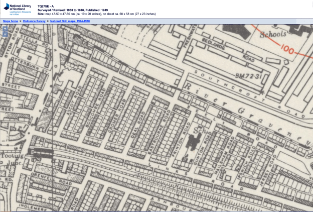 In this 1938 OS map, the north border of Mitcham can be seen along the River Graveney.