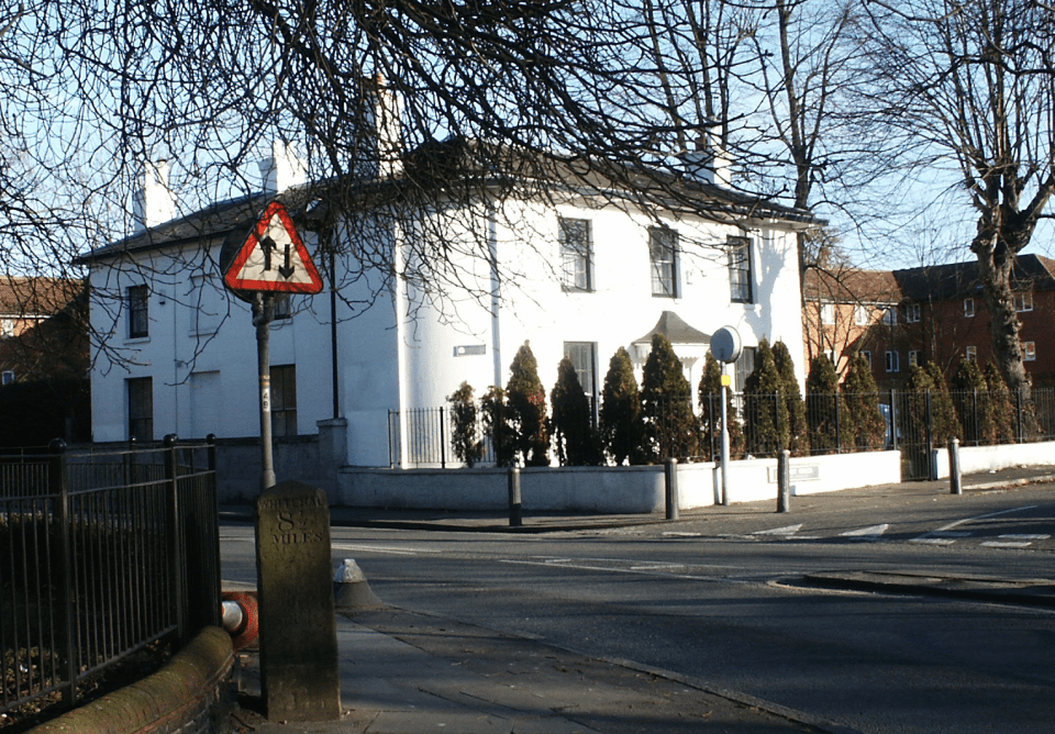 Elm Lodge and milestone