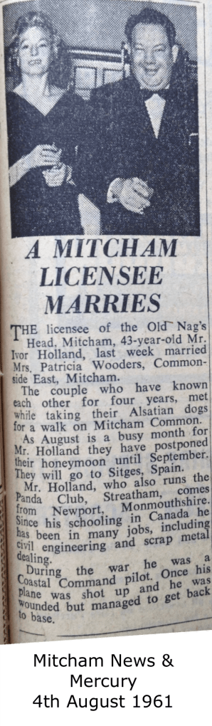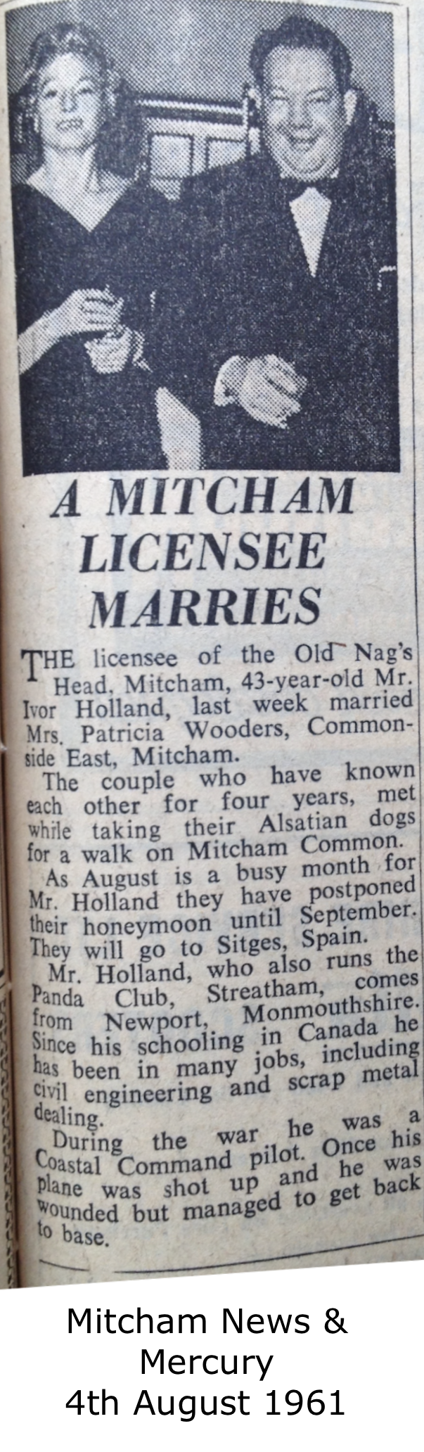Licensee of the Old Nag’s HeadMrs. Irene Kate Godfrey, licensee of the Old Nag’s Head public-house, Fair Green, Mitcham, died at her home last Thursday at the age of 63. With her husband, Mr. Montague Godfrey, she came to Mitcham 18 years ago from the New Inn Westfield, Sussex. Mr. Godfrey died twelve rears ago, and Mrs. Godfrey had since carried on the business. She was the founder of the Old Nag’s Head Women’s Sick Club, which has enjoyed great success and is still flourishing. She had been in ill health for the past two years. A daughter, two sons and a wide circle of friends mourn their loss. The funeral was on Tuesday, at Morden Cemetery. Messrs. W. P. Mellhuish and Sons, Totterdown-street, Tooting, were the undertakers.