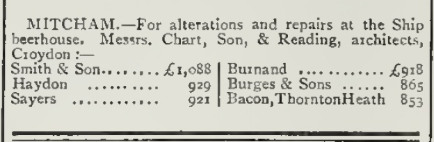 LICENSE RENEWED.Mr. Arthur Page, on behalf Messrs. Page and Overton, applied for the renewal of the license of the “Ship,” Mitcham, the tenant of which house Mr. Richard Rowland. Mr. Stayner stated that in Mitcham there were twenfy fully-licensed houses, twelve beer houses, and eleven off licenses. The population of Mitcham was 22,550, excluding the inmates of the Holborn Union Work house and Schools. The license of the house had changed hands four times within the past ten rears. The present tenant had been there since 1901. There were no convictions recorded. Inspector Jays said that within a radius of a furlong of the house there were 76 occupied houses and ten empty ones, and the population, calculating five persons to each house was 380. Within a quarter of a mile radius there were 257 occupied and 12 unoccupied houses, making the total population 1,285. Within the same area there were seven licensed houses.