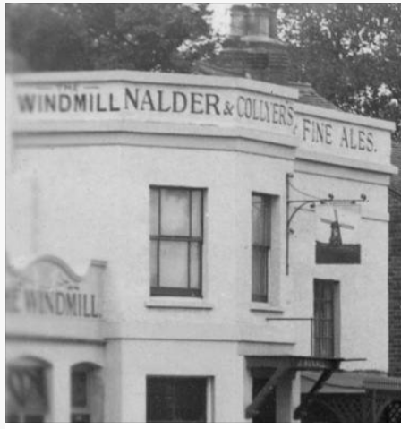 The first indisputable documentary evidence of a public house on the site is in the tithe register of 1847, which records the ‘Windmill Beershop, cottages and gardens’ occupying a plot totalling 11 poles, and owned by Charles WAYMARK.