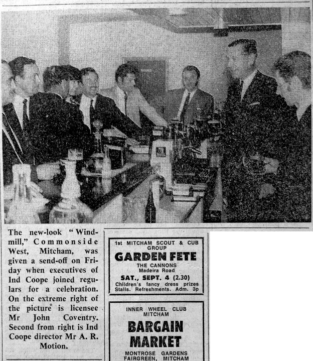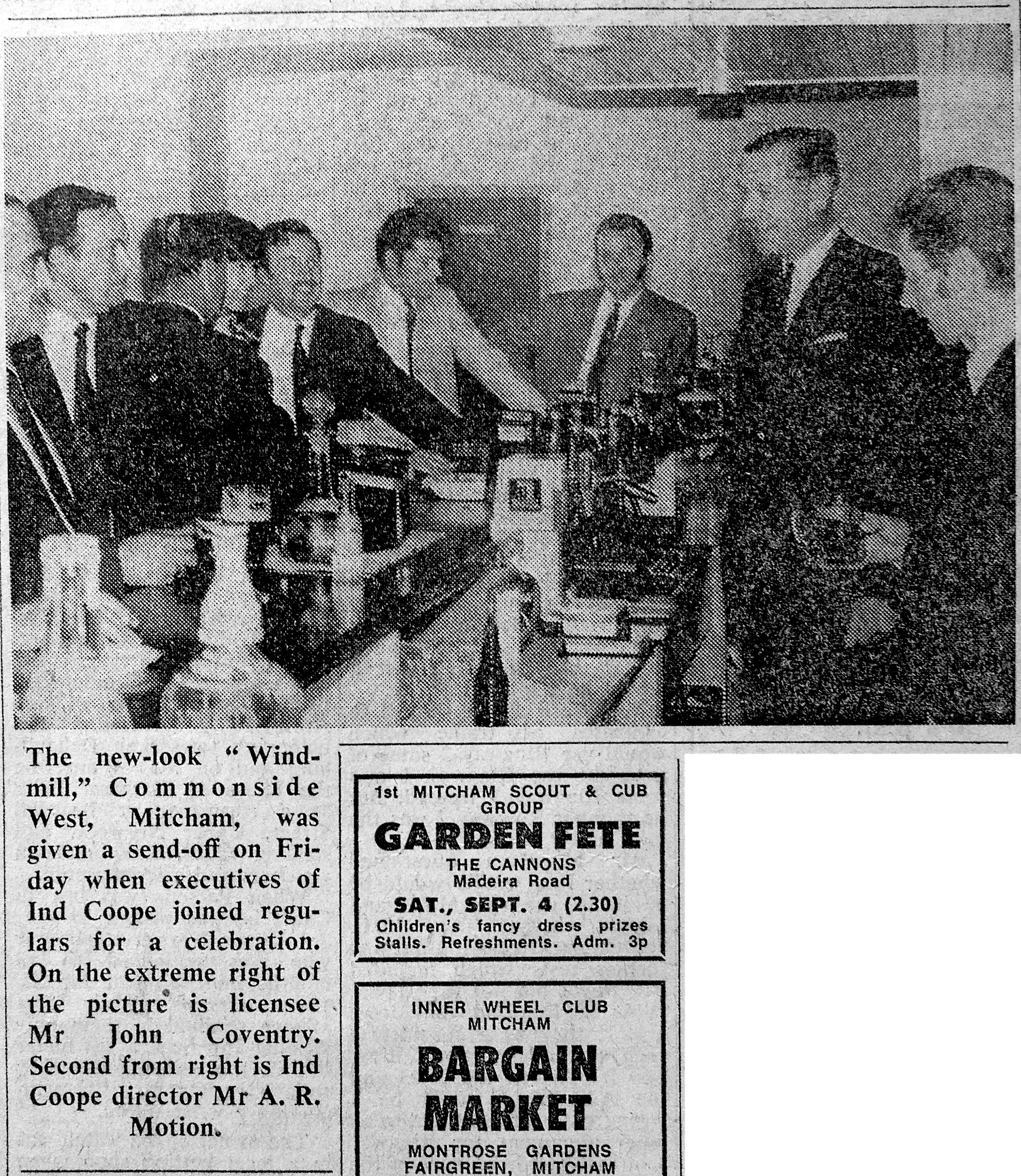 The new-look “Windmill,” Commonside West, Mitcham, was given a send-off on Friday when executives of Ind Coope joined regulars for a celebration.