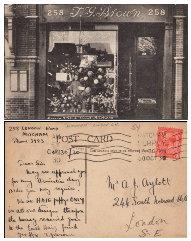 This postcard, posted in October 1930, shows the shop as T.G. Brown, florists: