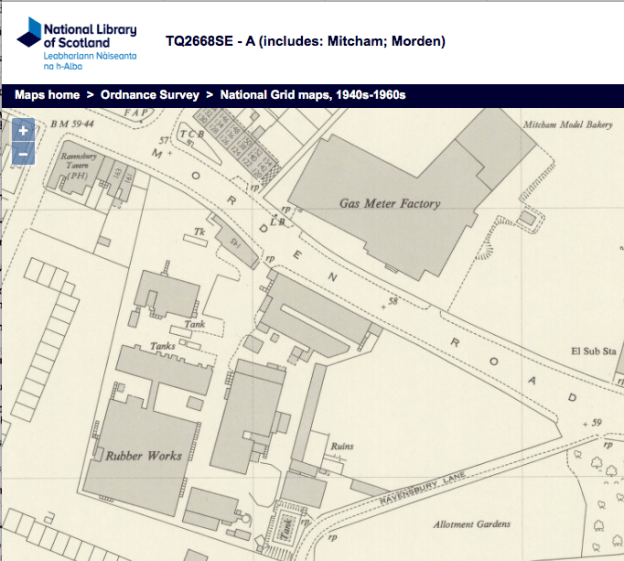 Rubber factory that was on the south side of Morden Road, as shown in this 1953 OS map.