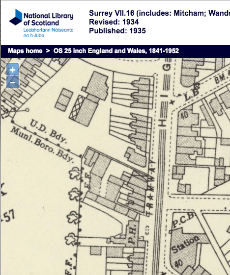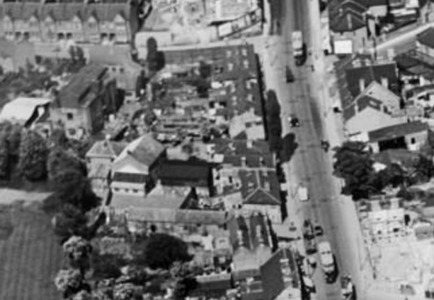 1924 aerial photo. The site for Colliers wood underground station can be seen bottom right. The cork factory is on the left of the High Street.