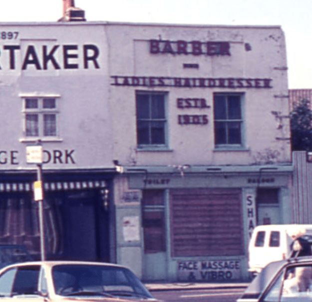 Alec William Sado had been barber for almost 40 years in this shop at 7, St Mark’s Road, Mitcham. This photo was taken in 1975 by Eric Montague, the same year that Alec Sado passed away.