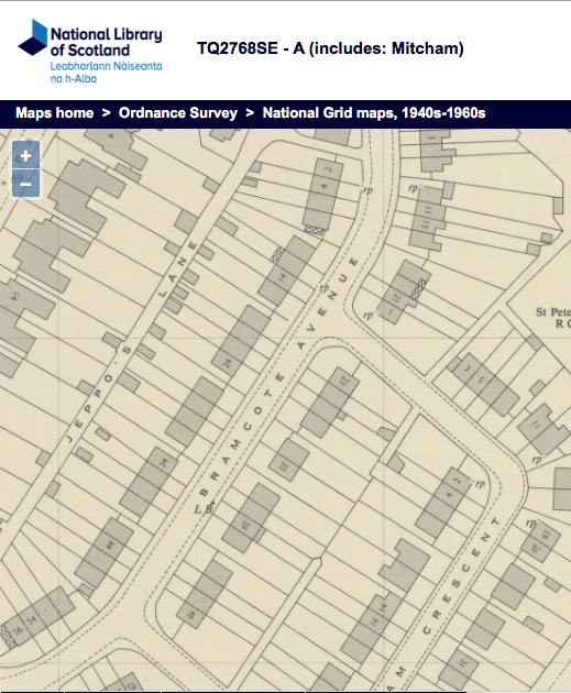 The houses, mostly in blocks of 4, are numbered odd on the east side from 1 to 55, and even on the west side from 2 to 56. Addresses at Bramcote Court and Parade have the postcode CR4 4LR, odd numbered houses have CR4 4LW and even have CR4 4LU.