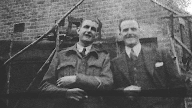 Cyril Bain (on left) with his friend Ernie Simpson (on the right). This photo taken in back garden of Ernie’s mother’s house in Church Road, and was provided by Ernie’s son.
