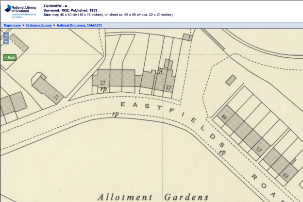 An aerial view of No. 21 Eastfields Road can be seen in the bottom right hand corner of an 1953 aerial photo on Historic England.